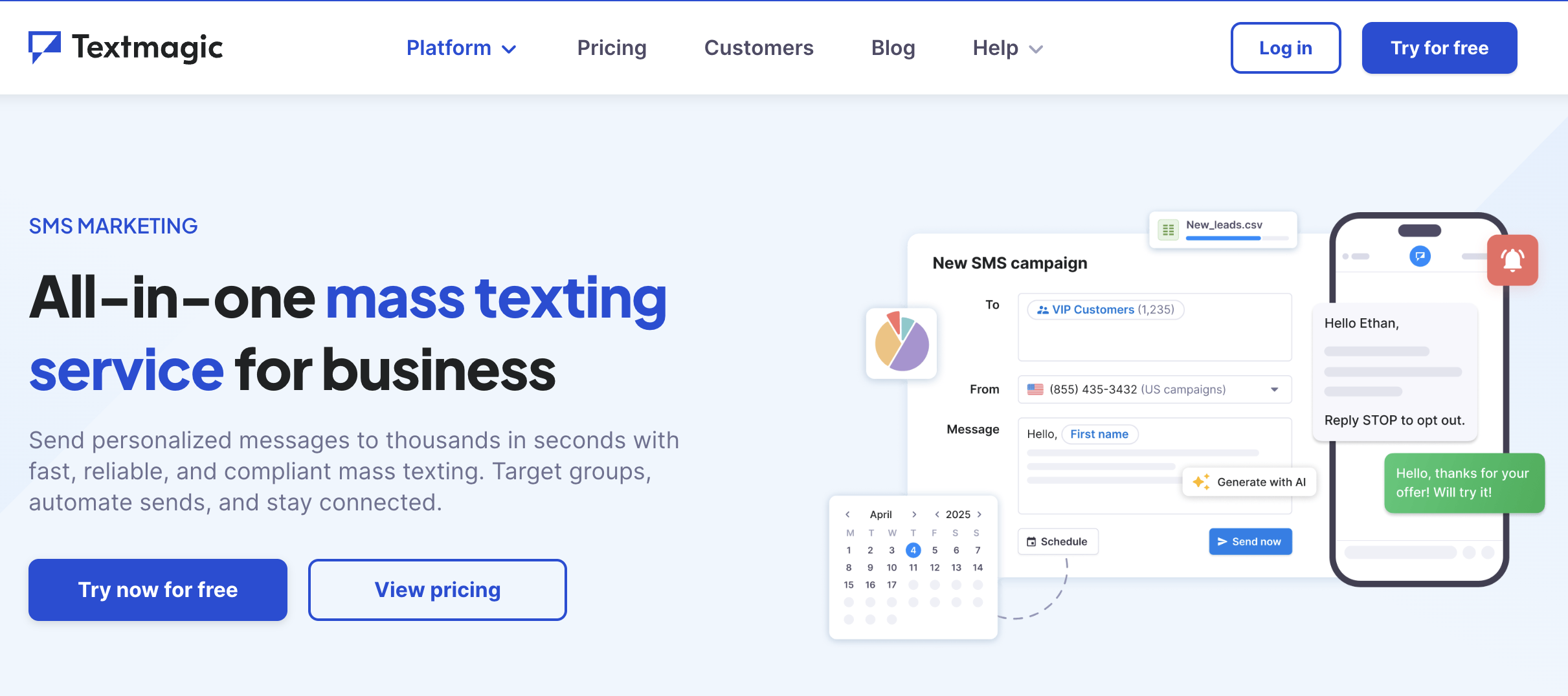 What’s better than SimpleTexting? Consider SlickText for rapid business growth and list building, TextMagic for flexible pay-as-you-go pricing, Textedly for text-to-pay features, ClickSend for next-generation RCS messaging, and EZ Texting when you need extra help getting started.